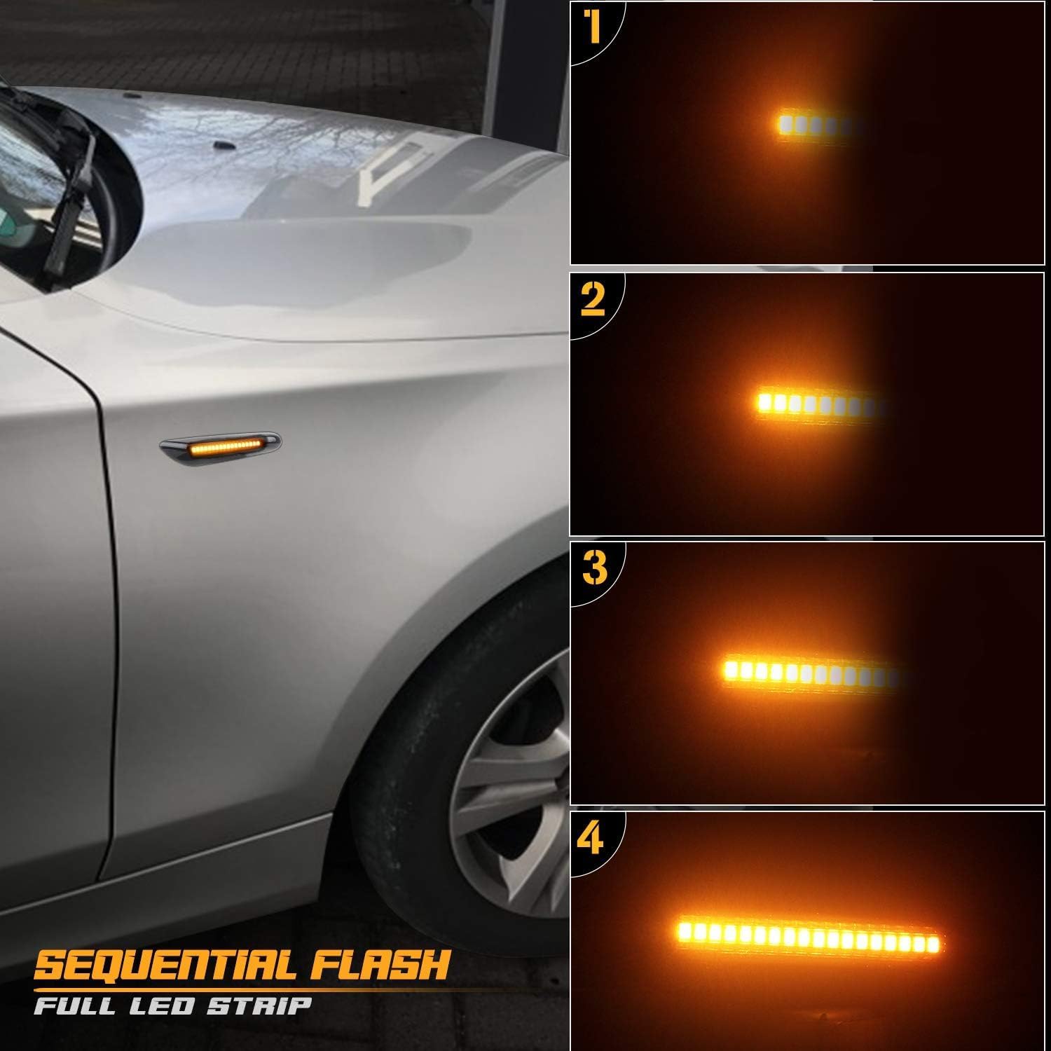 Smoked Lens Sequential LED Turn Signal Side Markers for BMW E90 E91 E92 E93 E46 E53 X3 E83 X1 E84 E81 E82 E87 E88, Pack of 2